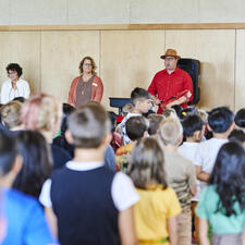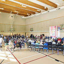 On September 20, 2022, the Abbotsford Board of Education hosted the official grand opening event of Irene Kelleher Totí:ltawtxw, the newest elementary school in the Abbotsford School District. Over 100 guests - including school trustees, government officials, district staff, students, and various community members - were in attendance to commemorate this exciting day, learn more about the building process and the history of the school's namesake, Irene Kelleher.